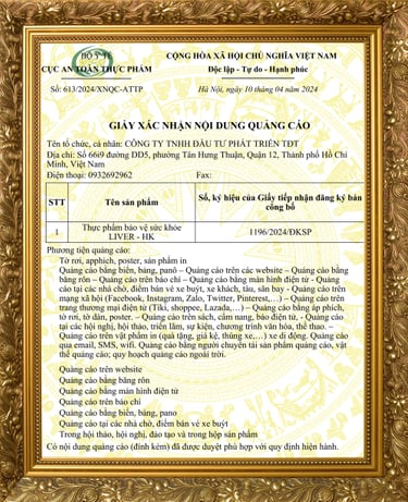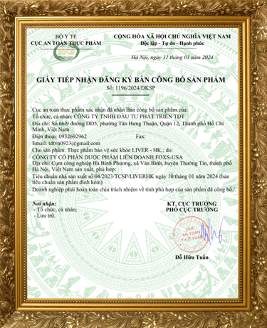 Được cục vệ sinh an toàn thực phẩm bộ y tế cấp phép lưu hành và quảng cáo
